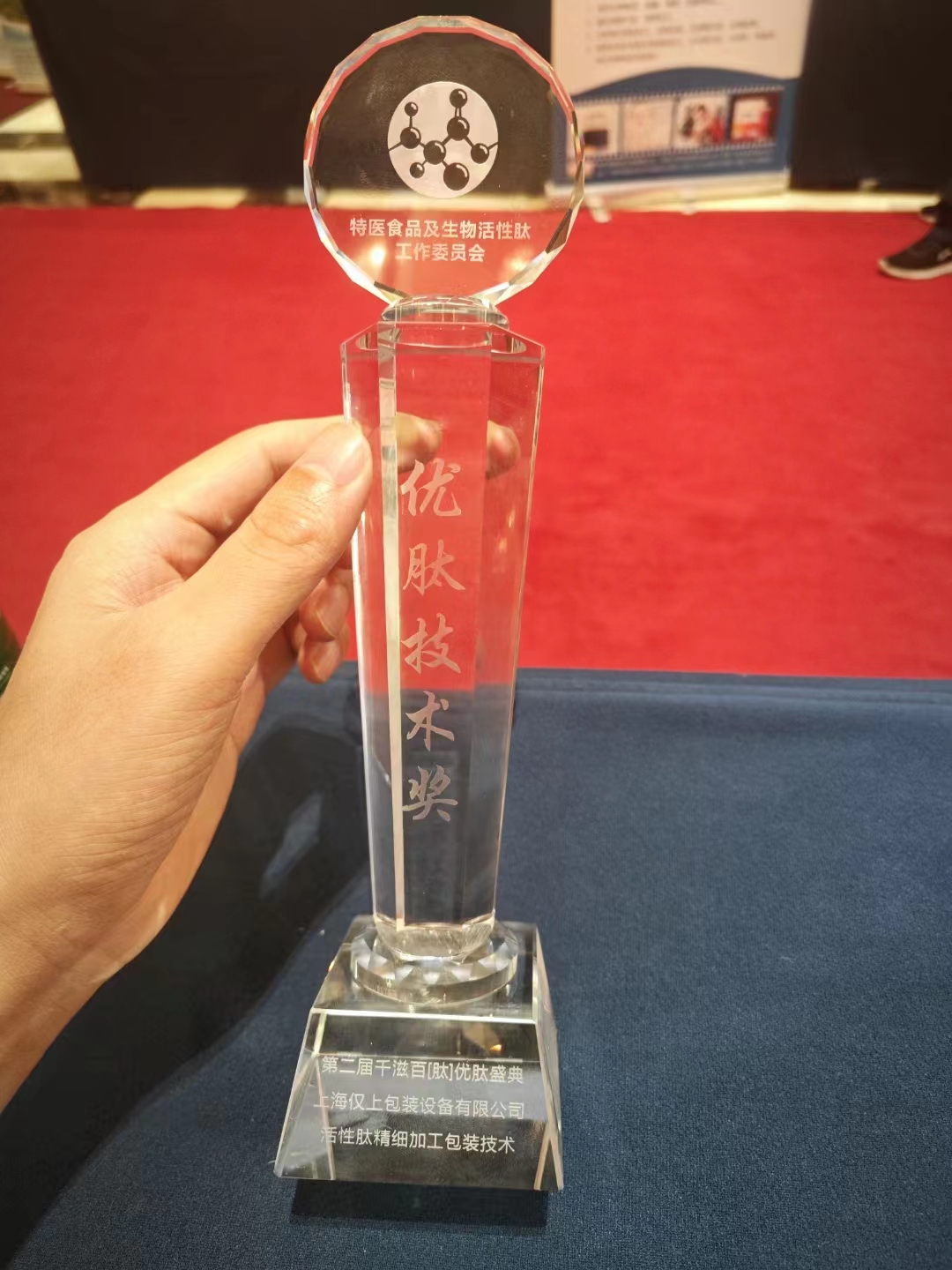 榮獲“優肽技術獎-活性肽精細加工包裝技術” ,感謝領導對我司的肯定,我們將一如既往的砥礪前行,提供更加穩定,更加智能化,更加高效的智能化包裝設備,努力服務好各大企業