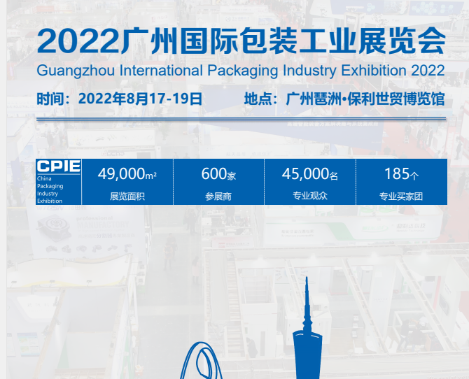 2022廣州國際包裝工業展覽會將于2022年10月11-13日在廣州琶洲·保利世貿博覽館隆重舉辦。本屆展會以“智能創新、包裝未來”為主題,將繼承和發揚往屆展會高規格、大規模、專業化的特色,提高服務質量,擴大宣傳力度,吸引更多國內外廠商參展,同時也將更廣泛地組織國內外專業觀眾參觀。